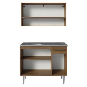 Super moderno, este móvel oferece um espaço otimizado para organizar seus utensílios e alimentos com praticidade no armário superior e no balcão.