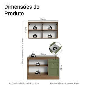 Cor: Verde | Garantia: 3 meses contra defeitos de fabricação | Dimensões - Altura: 225 cm | Dimensões - Largura: 120 cm | Dimensões - Profundidade: 52 cm | Produto: Cozinha Compacta | Marca: Madesa | Peso aproximado: 73 kg | Material: MDP | Estado de Origem: RS | Conteúdo da embalagem: Uma Cozinha Compacta | Material para Filtro: MDP | Instruções/Cuidados: Utilize um pano limpo, levemente umedecido e seque em seguida a superfície. Não usar produtos químicos ou abrasivos para a limpeza. Recomendamos polir seu móvel com lustra-móveis duas a três vezes por ano. | Produto precisa de Montagem?: Sim | Inclui tampo: Não | Peso Produto Com Embalagem (Kg): 73,56 | Altura do Produto com Embalagem (cm): 42,3 | Largura Produto Com Embalagem (cm): 60,5 | Comprimento Produto Com Embalagem (cm): 135 | Descrição do Tamanho: 225 cm x 120 cm x 52cm | Nome do Simples no Fornecedor: Armário de Cozinha Compacta 120 cm Rustic/Verde Vik Madesa 01 | Fabricante: Madesa | RBN: Casa/Móveis/Móveis para Escritório em Casa | Quantidade de Gavetas: 3 | Quantidade de portas: | Tipo de móveis de cozinha: Cozinha Completa | Materiais do corpo: MDP | Quantidade de caixas de embalagem: 8 | Bullet Point 0: Dimensões: 225 cm altura x 120 cm largura x 52 cm profundidade | Bullet Point 1: A combinação perfeita entre design clássico e elementos modernos | Bullet Point 2: Inspiração no estilo americano, frentes com acabamento chanfrado e textura fosca suave ao toque | Bullet Point 3: Puxadores ponto em ouro envelhecido e portas com fechamento suave | É Frágil: Não | Quantidade de Itens: 1 | Certificação de teste externa: Sim | Modelo: GRVK120001M3 | Componentes incluídos: Portas | Precisa de baterias ou pilhas: Não | Número da peça: GRVK120001M3 | Preço sugerido sem impostos: 1899.99 | Peso do item (item_weight): value=73.56;unit=kilograms | Dimensões do item P x L x A (item_depth_width_height): depth#value=52;depth#unit=centimeters;height#value=225;height#unit=centimeters;width#value=120;width#unit=centimeters | Requer montagem (REQUIRES_ASSEMBLY): Sim | Inclui manual de montagem (INCLUDES_ASSEMBLY_MANUAL): Sim Cor: Rustic/Verde