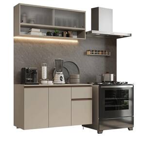 Se você busca uma cozinha com design moderno e funcional, essa composição vai conquistar você. Ela é composta por dois módulos essenciais para o dia a dia: um balcão e um armário aéreo com portas de correr em vidro pontilhado um dos grandes destaques do conjunto. O vidro confere um toque sofisticado com leve transparência, valorizando o ambiente.
