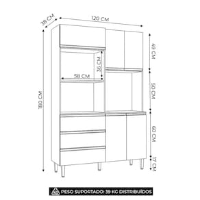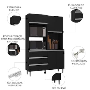 Ideal para otimizar a organização da cozinha, o móvel reúne funcionalidade e aproveitamento inteligente do espaço. Conta com compartimentos superiores que facilitam a rotina e o Armário para Micro-Ondas e Forno Elétrico, mantendo tudo sempre ao alcance.
