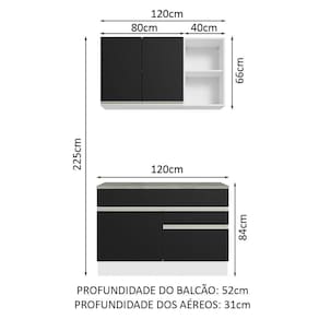 - 52 cm de profundidade no balcão e 31 cm nos aéreos