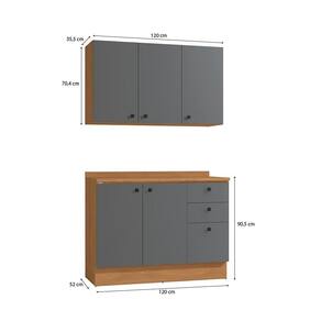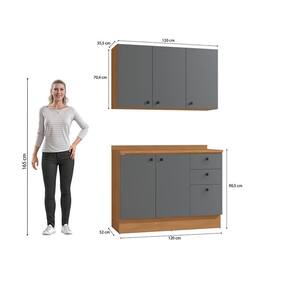 Acabamento: 100% BP / Pintura Touch | Cor: Canela/Cinza Sagrado | Corrediças: Telescópicas | Dobradiça: Com Amortecimento | Garantia: 3 meses para defeito de fabricação | Matéria-prima: MDP / MDP BP | Peso suportado por cada gaveta: 6 Kg | Peso suportado por cada prateleira: 7 kg | Puxadores: Metálicos | Quantidade de gavetas: 3 | Quantidade de portas: 3 | Quantidade de prateleiras: 1 / 2 | Sistema de montagem: Parafuso Philips / Parafuso Philips e Minifix | Tipo de porta: Bater | Duração da garantia: 3 meses | Montagem: Necessita montagem | Tipo de garantia: Garantia do fabricante | Requer montagem: Sim | Tipo de móveis de cozinha: Combo de móveis de cozinha
