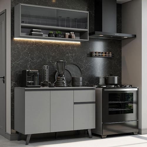 Armário De Cozinha Compacta 120cm Cinza Nice Madesa 01 Cinza