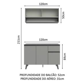 - 52 cm de profundidade no balcão e 31 cm no aéreo