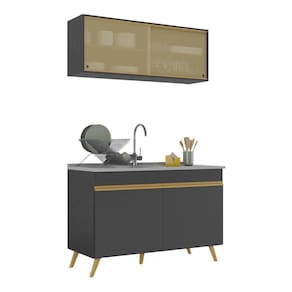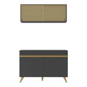 Armário De Cozinha Compacta 120cm Veneza Multimóveis V2140 Preto/dourado Preto/dourado