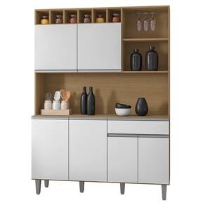 Armário de Cozinha Compacta 130cm 6 Portas Alice Amêndoa/Branco - AJL Móveis