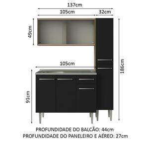 - 44 cm de profundidade no balcão e 27 cm de profundidade no aéreo e no paneleiro