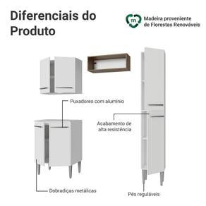 Esta cozinha inclui um paneleiro com duas portas, um balcão com duas portas e tampo, um aéreo com duas portas e um nicho aberto. O acabamento em branco garante um visual mais leve e elegante, perfeito para a sua cozinha.