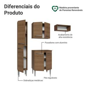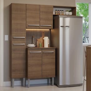 Esta versão inclui um paneleiro com duas portas, um balcão com duas portas e tampo, um aéreo com duas portas e um nicho aberto, ideal para posicionar a geladeira logo abaixo. O acabamento em tom amadeirado Rustic, traz um ar aconchegante, transformando sua cozinha em um espaço ainda mais agradável.