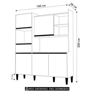 Além disso, o Armário dispõe de uma gaveta com corrediças metálicas, que deslizam com facilidade. Para complementar a organização, há quatro nichos amplos que podem ser para acomodar eletroportáteis, itens decorativos ou utensílios de uso frequente. O espaço superior também pode ser aproveitado, tornando o móvel ainda mais funcional.