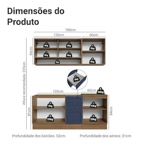- 52 cm de profundidade nos balcões e 31cm nos aéreos