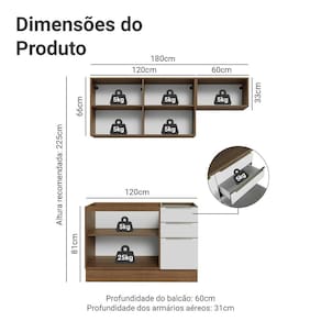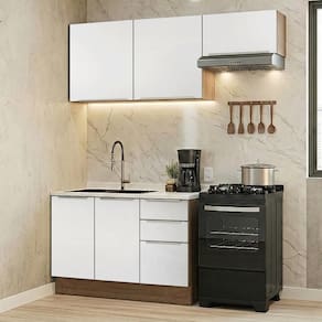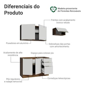 A composição reúne módulos que otimizam a organização e facilitam a rotina no dia a dia. O gabinete de pia não inclui tampo, permitindo que você escolha o acabamento.