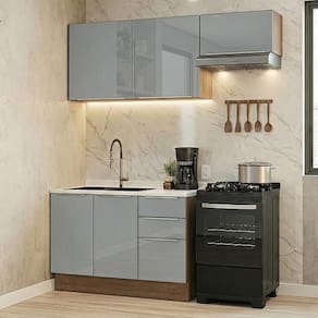 O destaque da linha Lux está no design: as portas com vidro sobreposto garantem um visual elegante e mais resistência. A combinação do tom amadeirado rustic com o cinza traz um toque moderno.