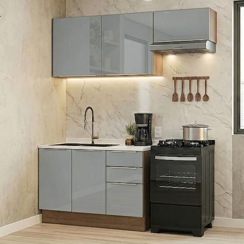 A cozinha de 180 cm da linha Lux da Madesa é perfeita para quem busca praticidade e bom aproveitamento de espaço, sem abrir mão de um visual moderno.