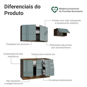 A composição reúne módulos que otimizam a organização e facilitam a rotina no dia a dia. O gabinete de pia não inclui tampo, permitindo que você escolha o acabamento.