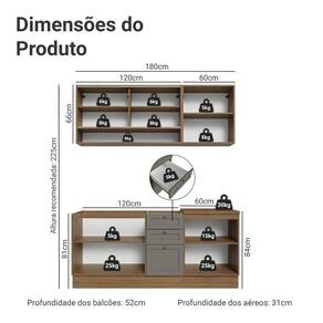- 52 cm de profundidade nos balcões e 31cm nos aéreos