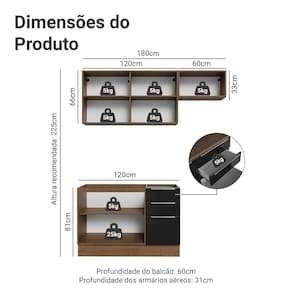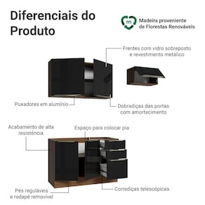 A composição reúne módulos que otimizam a organização e facilitam a rotina no dia a dia. O gabinete de pia não inclui tampo, permitindo que você escolha o acabamento.