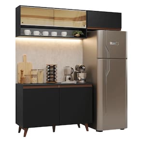 Formada por três módulos avulsos, possui amplo espaço para louças, panelas e utensílios. O balcão conta com tampo em MDP, que pode ser removido para instalação de pia de inox ou pedra de 120 x 52 cm.