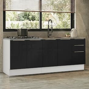 O destaque da linha Lux está no design: as portas com vidro sobreposto garantem um visual elegante e mais resistente. A combinação do branco com o preto cria um ambiente contemporâneo.
