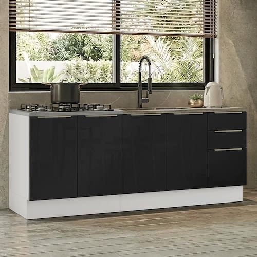 A cozinha de 200 cm da linha Lux da Madesa é perfeita para quem busca praticidade e bom aproveitamento de espaço, sem abrir mão de um visual moderno.