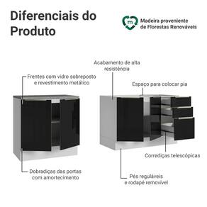 A composição reúne módulos que otimizam a organização e facilitam a rotina no dia a dia. O gabinete de pia não inclui tampo, permitindo que você escolha o acabamento.