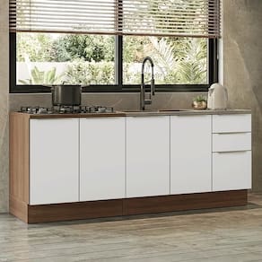 A composição reúne módulos que otimizam a organização e facilitam a rotina no dia a dia. O gabinete de pia não inclui tampo, permitindo que você escolha o acabamento.
