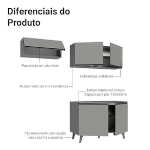 Para completar, o acabamento cinza de alta resistência é moderno e segue as tendências do mercado atual de cozinhas.