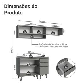 - 52 cm de profundidade nos balcões e 31 cm nos aéreos