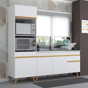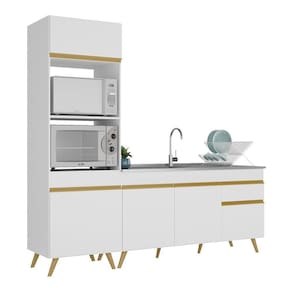 O Armário de Cozinha Compacta 212cm Veneza Multimóveis V2078 tem um excelente custo benefício e um amplo espaço interno. Produzido em MDP com acabamento acetinado (cerca de 20% de brilho), que garante maior durabilidade e resistência, possui corrediças metálicas (mais leveza no manuseio), pés retrô em polipropileno, que deixam o ambiente mais estiloso, puxadores em ABS e tampo em MDP 15mm com pintura de alta resistência. Esta cozinha conta com balcão com tampo removível (compatível com pia de 150 cm) com 1 gaveta e 3 portas, além de espaço para forno e microondas. Os módulos são individuais e você pode montar da maneira que se adaptar melhor ao seu ambiente. *Não acompanha pia de inox.