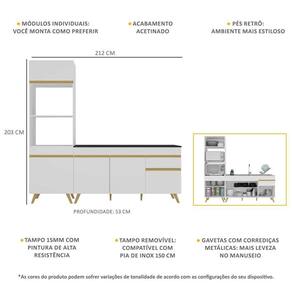 Dimensões do produto montado: Altura: 203cm | Largura: 212cm | Profundidade: 53cm (balcão com tampo e paneleiro) *Você pode consultar as medidas internas na imagem técnica do produto.
