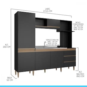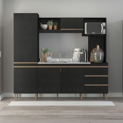 Armário De Cozinha Compacta 215x203cm Mdp 0318 Menu Móveis Preto A Cozinha Compacta e um movel util e versatil, perfeita para complementar o seu ambiente e facilitar nas tarefas do seu dia a dia. Dispoe de um design atual que facilita na hora de montar a decoracao, proporcionando um espaco mais aconchegante e organizado. Produzida com materiais de excelente qualidade, garantindo a sua durabilidade. O melhor em moveis no design atual aliando qualidade e otimos precos, so na Menu Moveis! Caracteristicas: Produzida em MDP de 15 mm Acabamento UV Texturizado Detalhe Travessa Flex Portas com Dobradicas Metalicas Gavetas com Corredicas Telescopicas Puxadores Perfil em ABS Pes Regulaveis em ABS NAO acompanha TAMPO e PIA