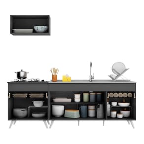 O Armário de Cozinha Compacta 220cm Veneza Multimóveis V2074 tem um excelente custo benefício e um amplo espaço interno. Produzido em MDP com acabamento acetinado (cerca de 20% de brilho), que garante maior durabilidade e resistência, possui corrediças metálicas (mais leveza no manuseio), pés retrô em polipropileno, que deixam o ambiente mais estiloso, puxadores em ABS e tampo em MDP 15mm com pintura de alta resistência. Esta cozinha conta com balcão com tampo removível (compatível com pia de 150 cm), com 1 gaveta e 3 portas e balcão para cooktop (o recorte do tampo deve ser realizado na hora da montagem conforme a medida do seu fogão) com 1 gaveta e 1 porta. Os módulos são individuais e você pode montar da maneira que se adaptar melhor ao seu ambiente. *Não acompanha pia de inox.Conteúdo da Embalagem:1 (um) armário aéreo 70cm1 (um) balcão com tampo 70cm1 (um) balcão com tampo 150cmDimensões do produto montado:Altura: 203cm | Largura: 220cm | Profundidade: 32cm (aéreo) - 53cm (balcão com tampo)*Você pode consultar as medidas internas na imagem técnica do produto.*As cores do produto podem sofrer variações de tonalidade de acordo com as configurações do seu dispositivo.Imagem meramente ilustrativa. Decoração e eletros não acompanham o produto.O produto será entregue desmontado e não disponibilizamos o serviço de montagem. Acabamento: Pintura Acetinada Texturizada | Cor: Preto/Dourado | Tonalidade: Preto | Material: MDP | Referência do Modelo: V2074 | Coleção: Veneza | Instruções de Cuidado: Limpar com pano seco para retirar o pó. Não utilizar lustra móveis e produtos químicos ou abrasivos à limpeza. | Sistema de Montagem: O produto acompanha manual de montagem e kit ferragem. O produto será entregue desmontado e não disponibilizamos o serviço de montagem. | Produto Composto por: 1 armário aéreo 70cm, 1 balcão com tampo 70cm, 1 balcão com tampo 150cm, manual de montagem e kit ferragem. | Altura Montado: 203 | Largura Montado: 220 | Profundidade Montado: 53 | Tamanho (L x A x P): 220 x 203 x 53 | Peso do Produto: 65 | Garantia do Fabricante: 3 | Fabricante: Multimóveis | Requer Montagem: Sim | Quantidade de Portas: 5 | Quantidade de Gavetas: 2 | Quantidade de Prateleiras: 1 | Quantidade de Puxadores: 7 | Quantidade de Pés: 10 | Porta com Vidro: Não | Corrediça: Metálica | Material do Puxador: ABS | Material dos Pés: Polipropileno | Acompanha Pia Inox: Não | Balcão 120 cm compatível para uso de pia: Não | Tampo Incluso: Sim | Quantidade de Tampos: 2 | Material do Tampo: MDP | Espessura do Tampo: 1.5 | Com Prateleiras: Sim | Produto: Cozinha Compacta | Tipo: Modular | Altura (cm): 203 cm | Largura (cm): 220 cm | Profundidade (cm): 53 cm | Estado de Origem: RS | Produto precisa de Montagem?: Sim, sugerimos a contratação do nosso serviço de montagem (para os CEPs em que o serviço está disponível) ou de algum profissional experiente de sua preferência | Ubicação do móvel: Não aplica | Altura do Produto com Embalagem: 30 | Largura do Produto com Embalagem: 57 | Comprimento do Produto com Embalagem: 155 | Peso do Produto com Embalagem: 65 | Nome do Produto no Fornecedor: Armário de Cozinha Compacta 220cm Veneza Multimóveis V2074 Preto/Dourado | Descrição do Tamanho: (L x A x P): 220 x 203 x 53 cm | Tempo de Garantia: 3 meses | Destaque 1: MDP com acabamento acetinado: maior durabilidade e resistência. | Destaque 2: Balcão com tampo removível: pode ser utilizado com pia. | Destaque 3: Corrediças metálicas (mais leveza no manuseio) e pés retrô em polipropileno: ambiente mais estiloso. | Destaque 4: Tamanho do Produto Montado (L x A x P): 220 x 203 x 53 cm | Destaque 5: Os módulos são individuais e você pode montar da maneira que se adaptar melhor ao seu ambiente. Garantia de 90 dias contra defeitos de fabricação. | Marca: Multimóveis | Acessórios incluídos: N/A Cor: Preto/Branco