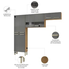 Armário de Cozinha Compacta 221cm Vivian Plus Freijó/Gris Z06 - Mpozenato