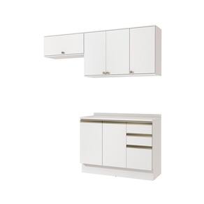 Os puxadores, com modelos diferentes no balcão e aéreos, são metálicos na cor dourada, completando a beleza e o design do produto. Renove seu espaço e o deixe ainda mais completo com Conjunto CB1399 da Cozinha Celeste Kappesberg.