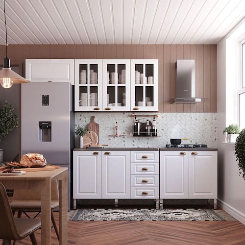 A Cozinha Safira traz design e sofisticação, a combinação perfeita entre beleza e funcionalidade. Desenvolvida em MDP, o que garante qualidade e durabilidade. E o estilo Provençal, que o queridinho do momento! Conta puxadores Bronze e pés com regulagem de altura no acabamento PS Cromado.