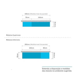 Inferior: 85 x 200 x 54,5 -Altura x Largura x Profundidade - cm-