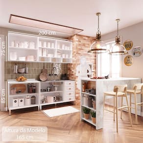 A Cozinha Cristal traz design e sofisticação, a combinação perfeita entre beleza e funcionalidade. Desenvolvida em MDP, o que garante qualidade e durabilidade. Conta puxadores Bronze e pés com regulagem de altura no acabamento PS Cromado.