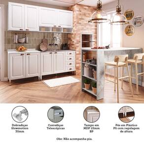 Balcão 120cm pode ser utilizado com tampo ou pia, porem nenhuma das opções acompanha o produto.