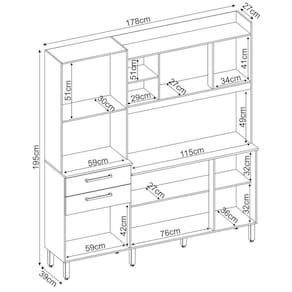 Com 6 portas, sendo uma superior com pistão a gás e duas amplas gavetas com corrediça metálica, 3 prateleiras internas e ainda possui pés reguláveis.Com este armário a sua cozinha vai ficar mais linda e aconchegante.Dimensões:Altura: 195 cmLargura: 178 cmProfundidade: 39 cmCaracterísticas Técnicas:- Desenvolvida em MDP- 6 portas e 2 gavetas- Espaço para microondas- Corrediças metálicas- Puxadores na cor champanhe- Pés com regulagem- Interna com prateleiras e compartimentos bem divididos- Não necessita furar a parede- Lindo design-A tonalidade cor da peça ou tecido do produto pode variar, não acompanha acessórios de decoração, fotos e imagens ilustrativas.-Móveis entregues desmontados, em local de fácil acesso no térreo. Na caixa. A responsabilidade pela montagem e instalação do produto é exclusivamente do comprador.-Recomendações para uma boa conservação: evitar a exposição direta à luz solar e à umidade para limpeza, limpar com pano macio e seco, não utilizar qualquer outro tipo de produto