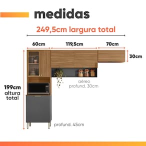 A = 21,8 cm / L = 117,1 cm / P = 30 cm (Armário Aéreo)