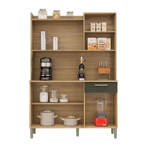 As 6 portas do Armário Florença proporcionam amplo espaço para armazenar seus utensílios de cozinha, panelas e mantimentos, mantendo tudo sempre ao alcance. A gaveta espaçosa é ideal para guardar talheres e outros pequenos itens, ajudando a manter a cozinha limpa e organizada, facilitando as tarefas do dia a dia.
