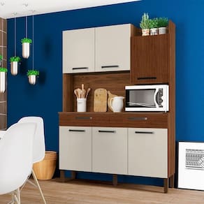Armário De Cozinha Compacta 6 Portas E 2 Gavetas 132cm Silver Ripado/off White - Pallazio