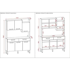 As 6 portas do armário permitem o armazenamento de diversos utensílios e mantimentos, garantindo que cada item esteja sempre ao seu alcance. As 2 gavetas são ideais para guardar talheres, panos de prato e outros pequenos acessórios, mantendo a cozinha organizada e facilitando a rotina diária.