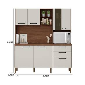 Material: MDP | Cor: Nogueira/Off White | Cômodo Indicado: Cozinha | Dimensões do Produto (A X L X P): 191 x 182 x 53,3 | Possui Prateleira: Sim | Possui Gaveta: Sim | Tipo da Corrediça da Gaveta: Telescópicas | Possui portas: Sim | Quantidade de portas: 7 Portas | Tipo de Porta: Bater | Possui porta Basculante: Não | Possui Pistão á Gás: Não | Possui Nichos: Sim | Possui pés: Sim | Possui Vidro: Sim | Quantidade de Vidros: 1 | Peso do Produto (Kg): | Altura do Produto (cm): 191 | Largura do Produto (cm): 182 | Comprimento do Produto (cm): | Nome do Simples no Fornecedor: | do Fabricante: 90 dias | Instruções/Cuidados: Evite com líquidos. Nada de lavar os móveis. Móveis não gostam de umidade. Não deixe o móvel exposto ao sol. Os acessórios também precisam de limpeza. | Produto precisa de Montagem?: Sim, a montagem é simples mas sugerimos a contratação de algum experiente de sua preferência | Material para Filtro: MDP | Material da Estrutura: MDP | Necessita Fixação na Parede: Não | Conteúdo Embalagem: Cozinha Compacta Ferrara | Origem: | Estado de Origem: Paraná | Quantidade de Volumes: 4 | Peso Bruto (volume 01): 25,3 KG | Comprimento x Largura x Altura (volume 01): 182 x 50 x 4 | Peso Bruto (volume 02): 38,7 KG | Comprimento x Largura x Altura (volume 02): 126 x 64 x 8 | Peso Bruto (volume 03): 18,8 KG | Comprimento x Largura x Altura (volume 03): 73 x 50 x 11 | Peso Bruto (volume 04): 6,8 KG | Comprimento x Largura x Altura (volume 04): 120 x 53 x 1 Cor: Nogueira/Off White