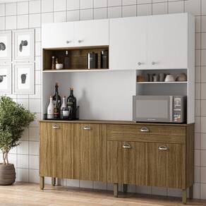 O segundo nicho, posicionado acima do micro-ondas ou forno elétrico, é ideal para decoração ou armazenamento de utensílios e temperos.