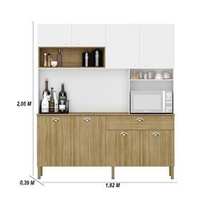 Com suas dimensões espaçosas de 205,0 cm de altura, 182 cm de largura e 39 cm de profundidade, esta cozinha oferece funcionalidade e praticidade.
