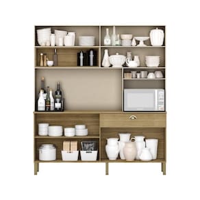 O segundo nicho, posicionado acima do micro-ondas ou forno elétrico, é ideal para decoração ou armazenamento de utensílios e temperos.