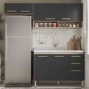 Armário De Cozinha Compacta Com Balcão Multimóveis Cr20235 Avena/grafito Avena/grafito O Armário de Cozinha Compacta com Balcão Multimóveis CR20235 é perfeito para otimizar o espaço da sua cozinha com estilo e praticidade. Sua estrutura em MDP garante resistência, enquanto o acabamento em pintura UV garante qualidade e beleza. Com sete portas e duas gavetas com corrediças metálicas, você terá amplo espaço para armazenar todos os seus utensílios de cozinha de forma organizada. Além disso, possui nichos ideais para guardar o que você desejar. Os puxadores em ABS adicionam um toque elegante ao móvel, enquanto os pés em PVC com regulagem de altura garantem nivelamento perfeito e proteção contra a umidade. O balcão NÃO acompanha tampo (compatível com pias de 120cm). Com módulos separados, permite que você monte do jeito que preferir. Conteúdo da Embalagem: 1 (um) Balcão 120cm 1 (um) Aéreo 120cm 1 (um) Aéreo 70cm Manual de Montagem Kit Ferragem