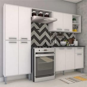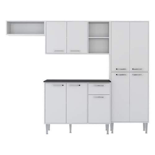 A Cozinha Completa Compacta com Armário e Balcão com Tampo Coimbra Multimóveis tem um excelente custo benefício e um amplo espaço interno. Os módulos são individuais e você pode montar da maneira que se adaptar melhor ao seu ambiente. Produzida em MDP, que garante maior durabilidade e resistência, conta com corrediças telescópicas em aço (maior durabilidade e travas de segurança para evitar acidentes), pés com regulagem de altura (permitem um perfeito nivelamento dos módulos), puxadores em ABS com acabamento cromado e tampos em MDP 15mm com pintura de alta resistência. Para deixar sua cozinha mais bonita e organizada, possui compartimento especial para utensílios mais altos e módulo aéreo com nichos. As portas embutidas proporcionam um visual de cozinha planejada.
