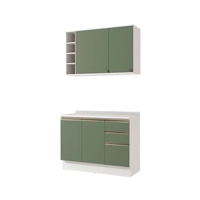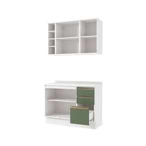 Acabamento: Pintura Brilho / Pintura Fosco / Pintura Touch | Cor: Branco/Verde Oliva | Corrediças: Telescópicas | Dobradiça: Com Amortecimento | Garantia: 3 meses para defeito de fabricação | Matéria-prima: MDF / MDP | Peso suportado por cada gaveta: 6 Kg | Peso suportado por cada prateleira: 7 kg | Puxadores: Metálicos / Puxadores de Metal e de Alumínio | Quantidade de gavetas: 3 | Quantidade de portas: 1 | Quantidade de prateleiras: 1 / 5 | Sistema de montagem: Parafuso Philips | Tipo de porta: Bater | Duração da garantia: 3 meses | Tipo de garantia: Garantia do fabricante | Montagem: Necessita montagem | Tipo de móveis de cozinha: Combo de móveis de cozinha | Requer montagem: Sim